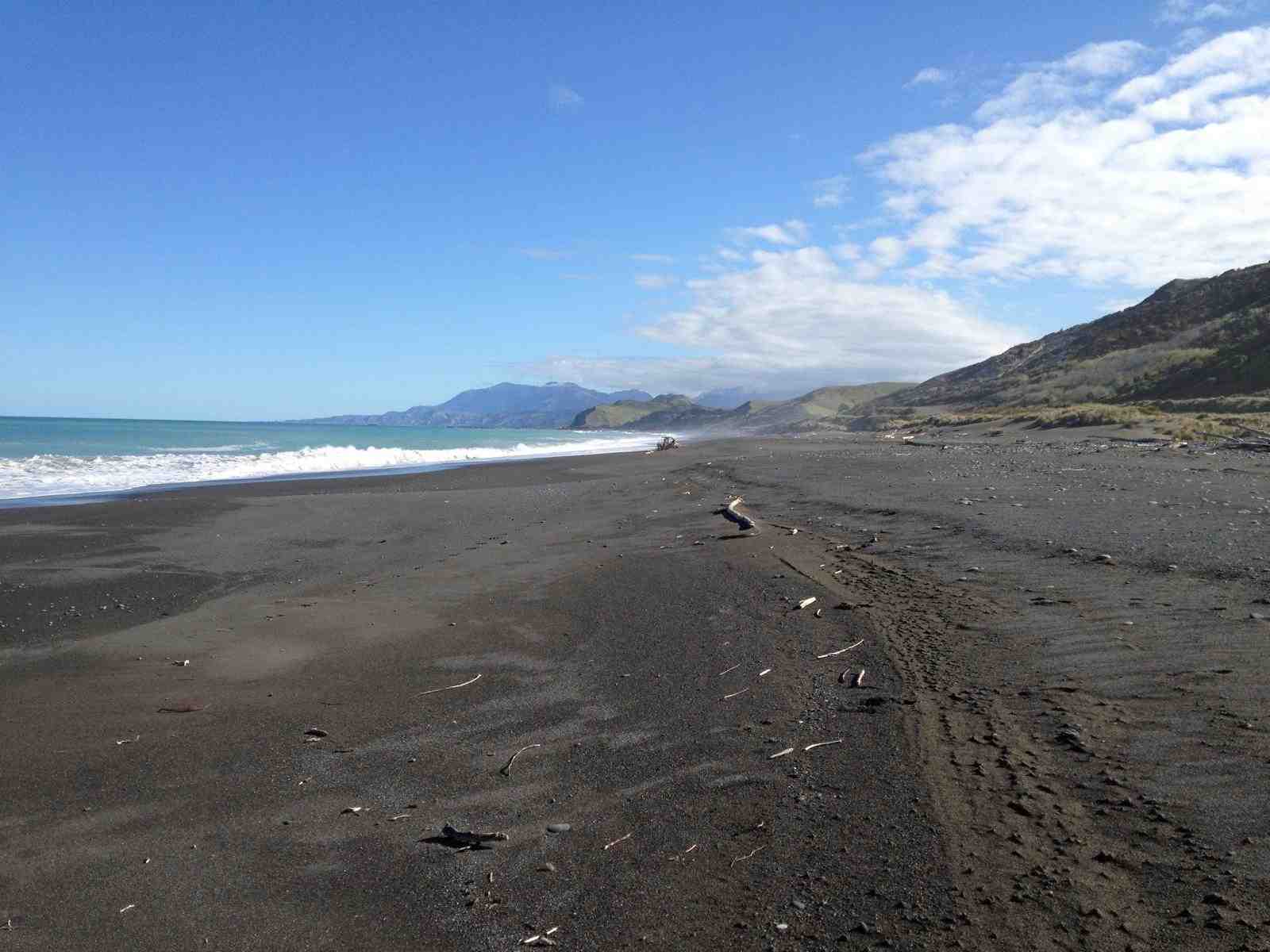 Wir sind angekommen auf der menschenleereren, schafreicheren, imposanten Südinsel Neuseelands! Nach zwei wirklich angenehmen Tagen bei Kristina war Samstagmorgen um 9.25 Uhr der final Check-in zu unserer Fähre nach Picton. Wir waren natürlich souverän um 9 Uhr 23 am Schalter und konnten noch aufs Schiffchen drauffahren. Da ich das freie Internet bei Kristina zum Skypen genutzt und keine 4 Stunden geschlafen hatte, döste ich erstmal ein bisschen. Danach gab es auf der Überfahrt noch einige wunderschöne Inseln und Buchten zu sehen, die wir ausgiebig bestaunten. Angekommen in Picton nahmen wir uns nicht viel Zeit, um die Stadt anzugucken, sondern fuhren zügig weiter Richtung Süden, weil wir uns in Christchurch mit Jannik und Kaddo aus Bielefeld treffen wollten. Die beiden hatten wir ja in Tauranga kennen gelernt und uns so gut verstanden, dass wir beschlossen hatten, zusammen herumzureisen. Also machten wir uns gegen 14 Uhr auf die etwa 350 Kilometer lange Reise. Die Natur war eigentlich die ganze Zeit über ziemlich beeindruckend, recht bergig und doch direkt am Meer. Nach etwa einer Stunde sahen wir dann eine Stelle, die uns so gut gefiel, dass wir erstmal eine Vollbremsung hinlegten, am Highway anhielten und eine Pause machten. Die paar Meter zum Meer waren schnell zurückgelegt und obwohl es zu kalt zum Baden war, verweilten wir eine gute halbe Stunde dort.